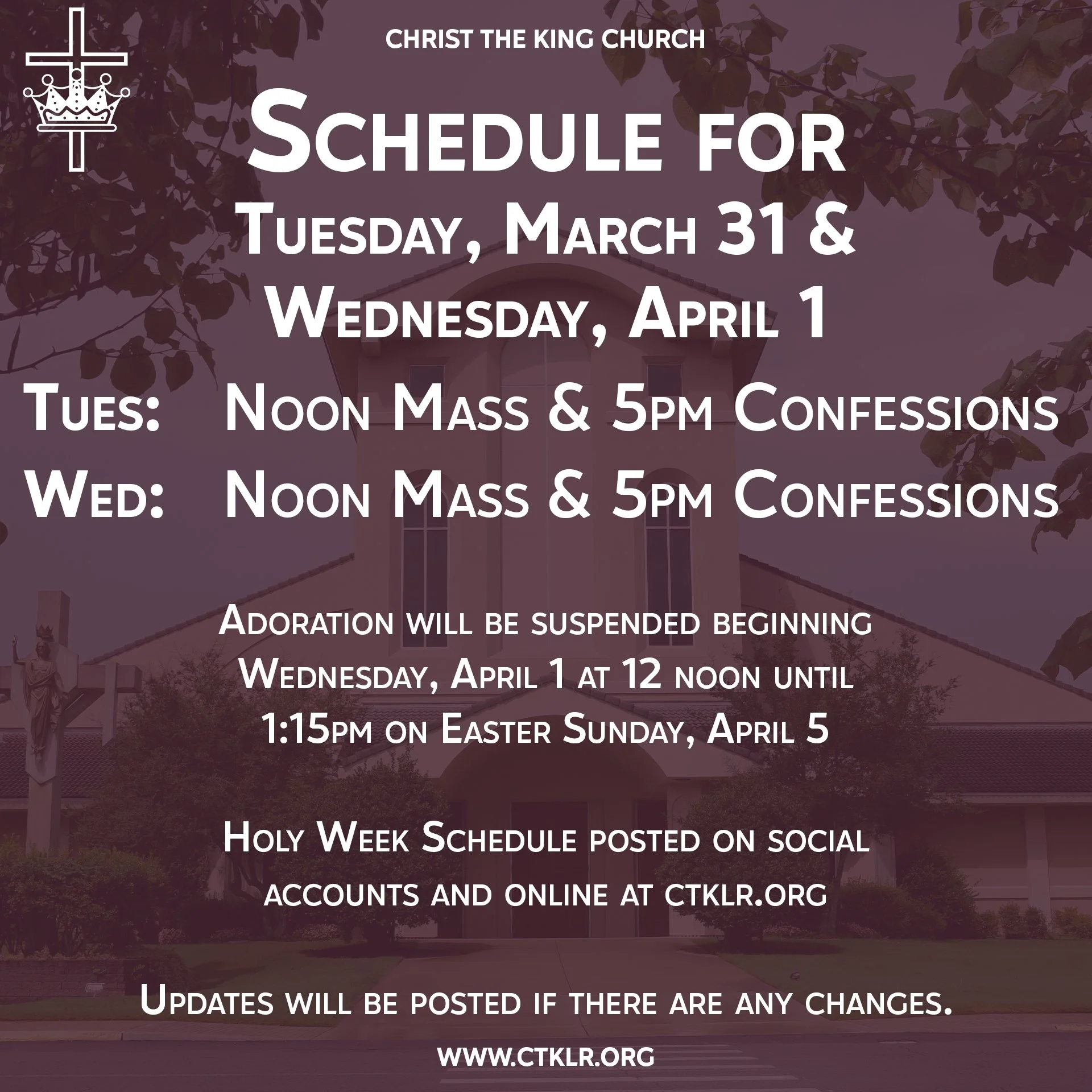 Christ the King offers 24 hours adoration year round. Sign up for an hour!