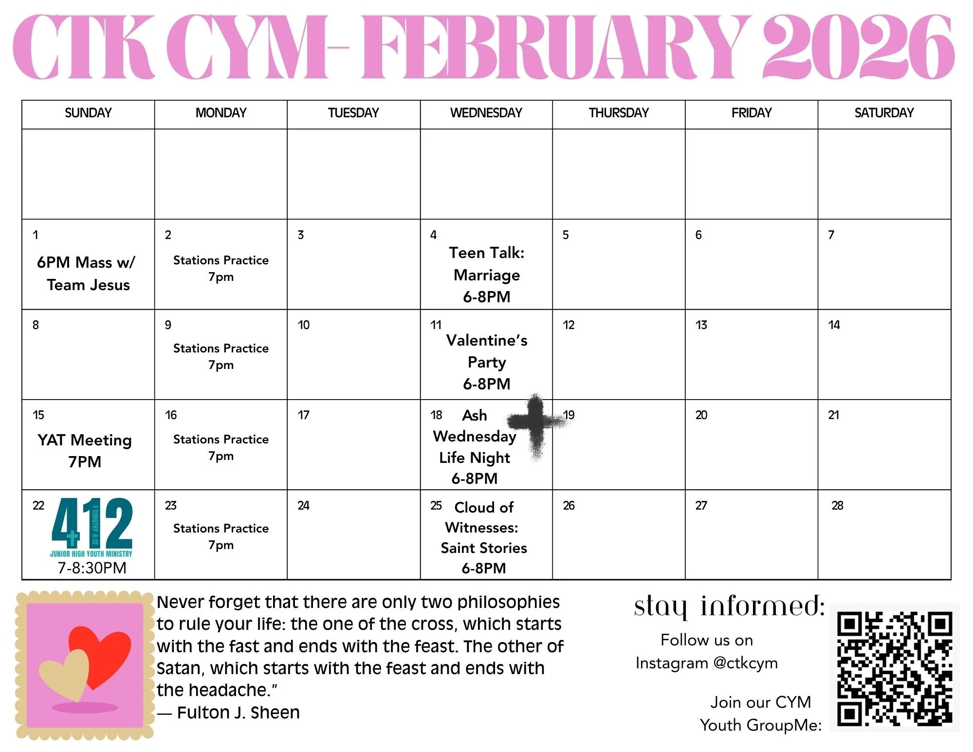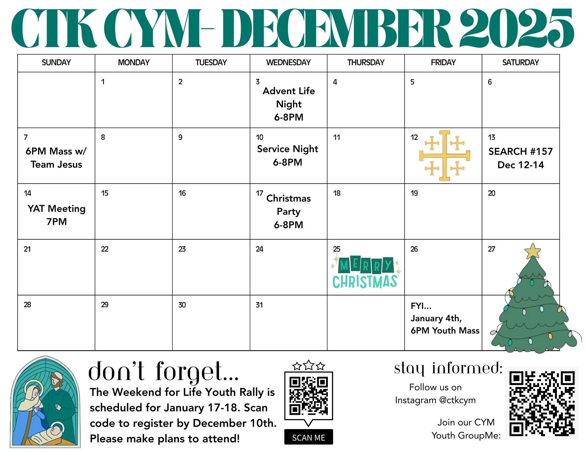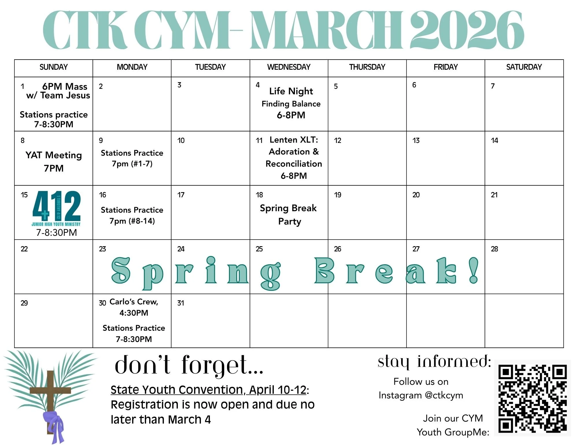 Follow us on Instagram @ctkcym and join our GroupMe for youth and parents.