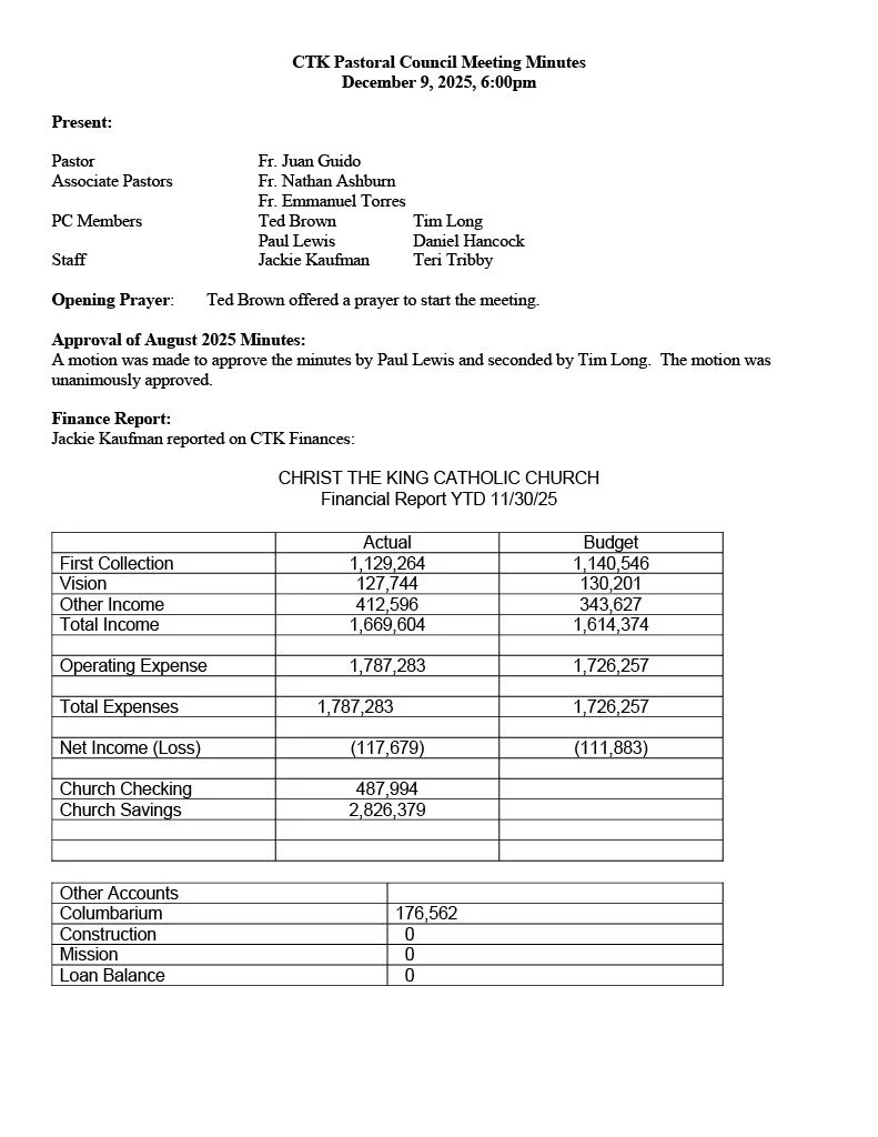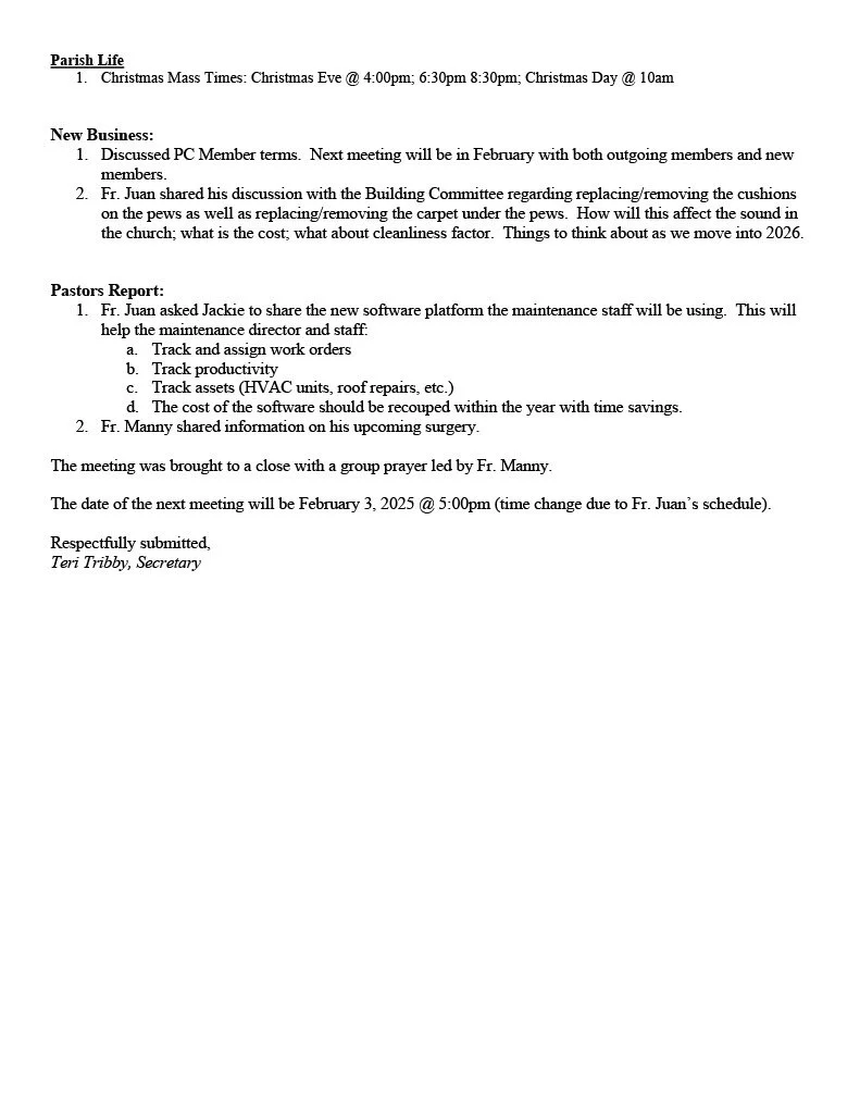 Pastoral Council Meeting Minutes