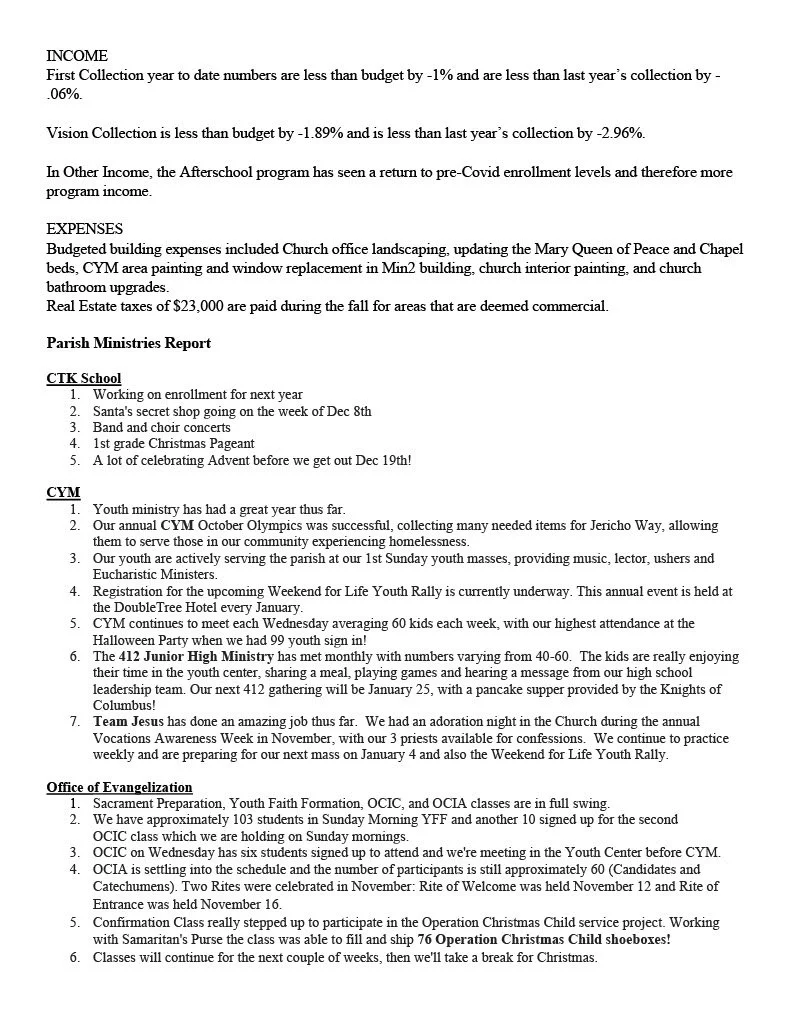 Annual Parish Financial Report